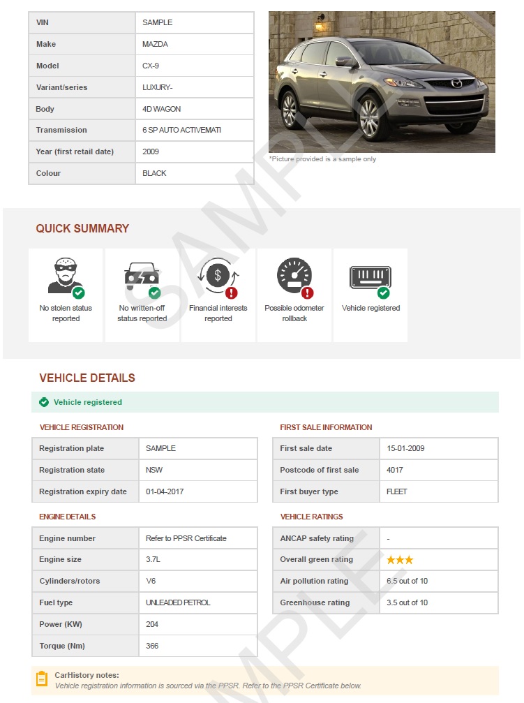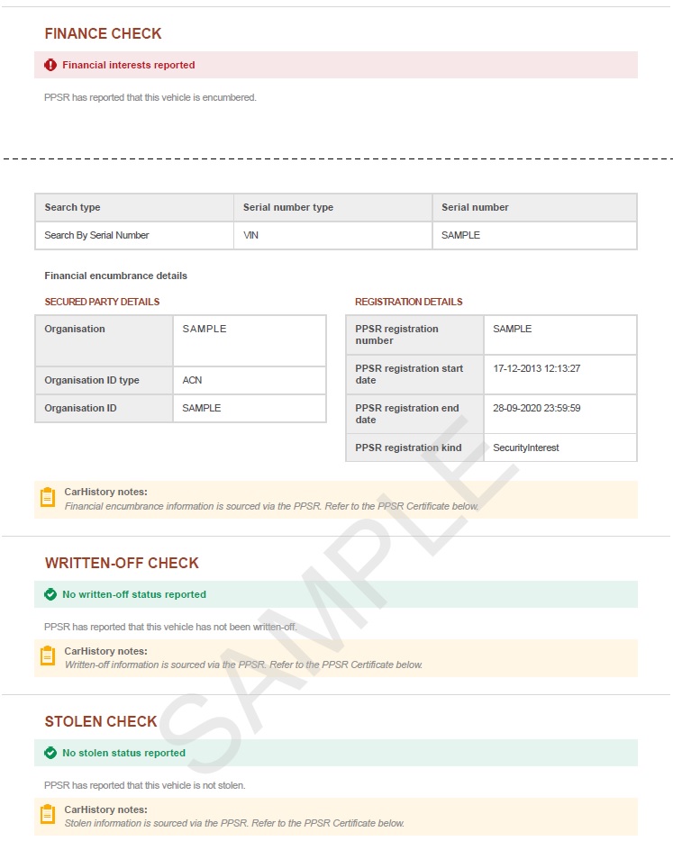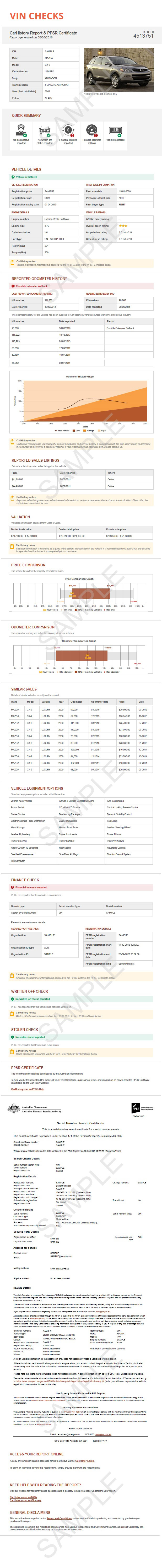 VIN Checks provides a Personal Property Securities Register government issued PPSR certificate, previously referred to as a REVS check (Register of Encumbered Vehicles). Information can be found on used cars, motorcycles, trailers and caravans by VIN. Boat information is based on HIN. VIN Checks provides access to many sources of vehicle information before buying such as: