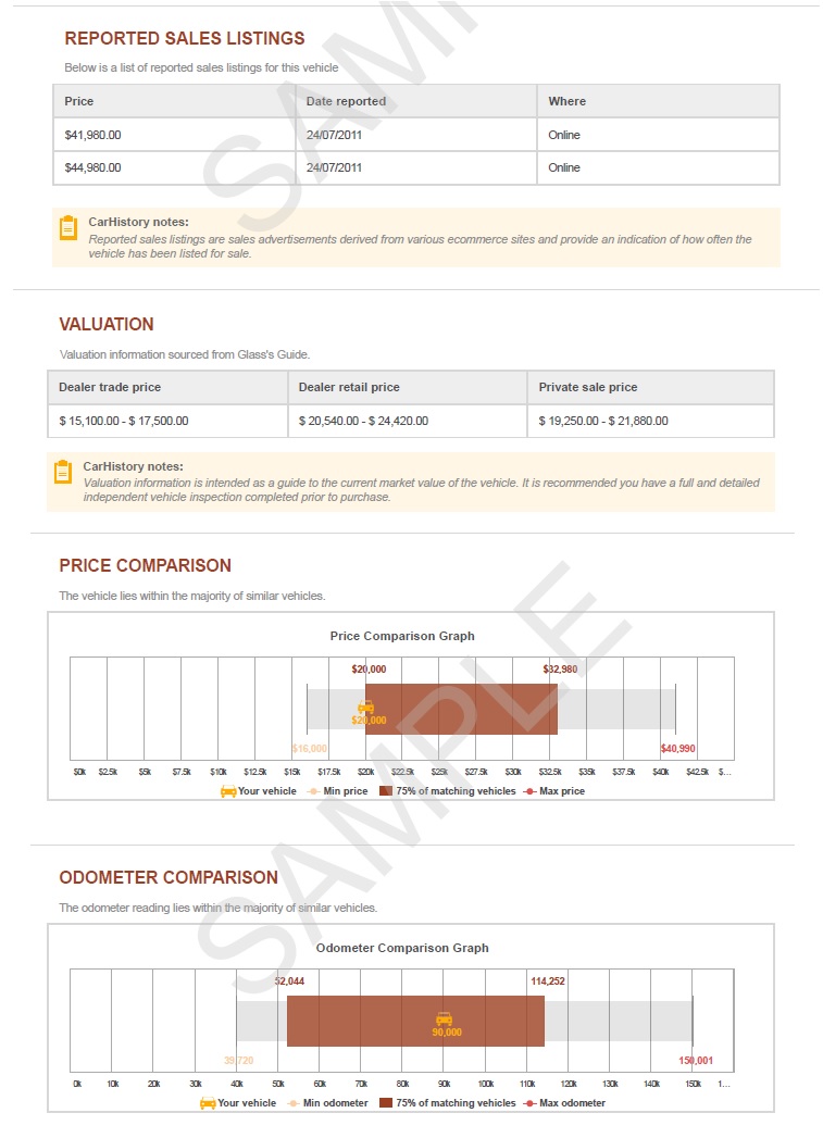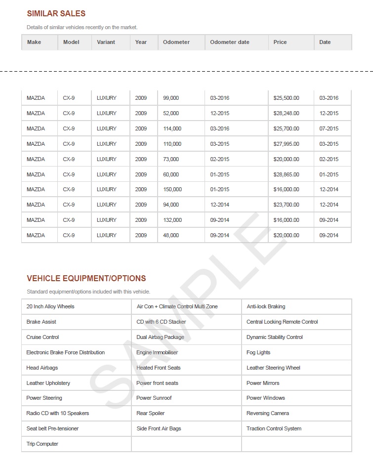 Vehicle value & sales history